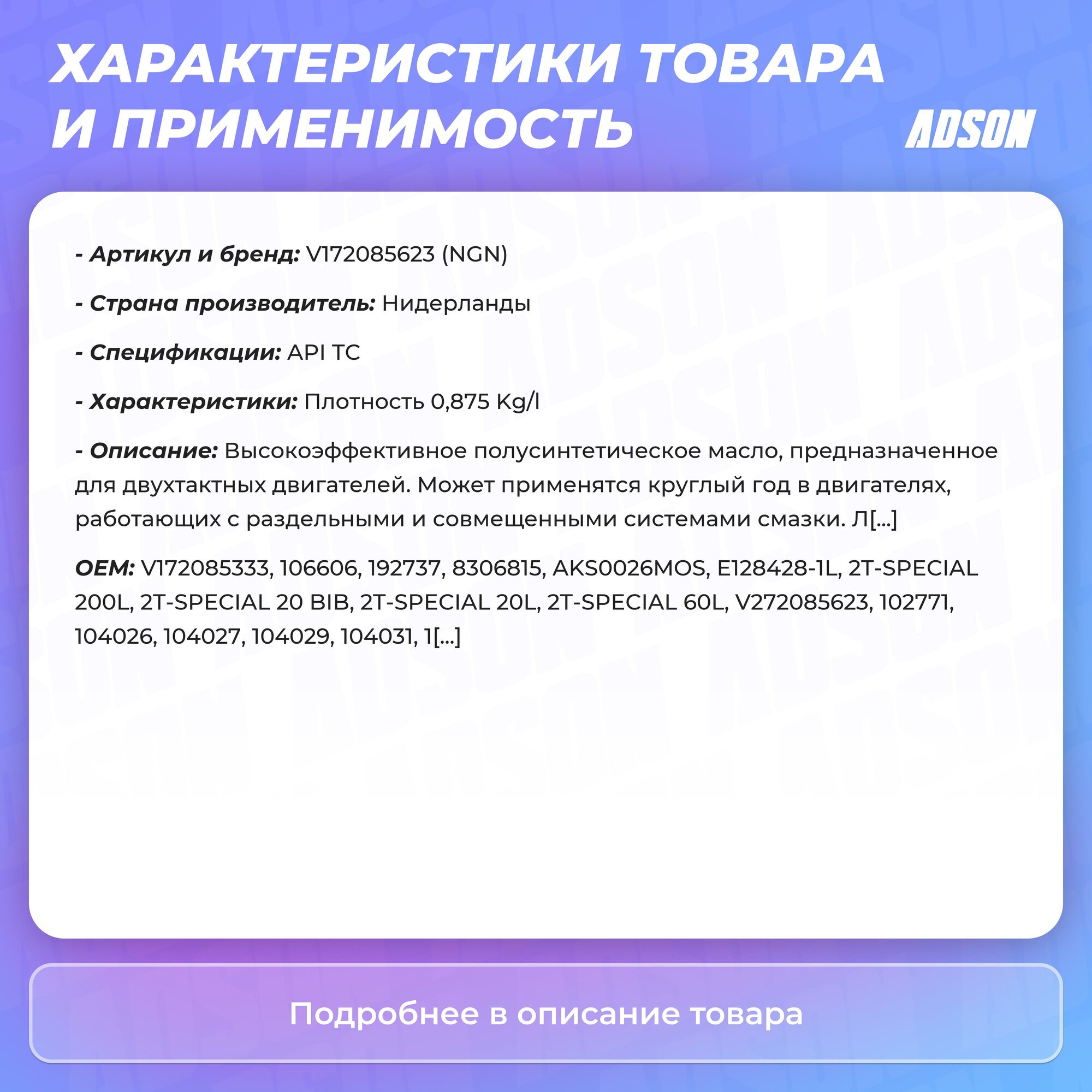 Моторное масло NGN 2T-SPECIAL 1л V172085623