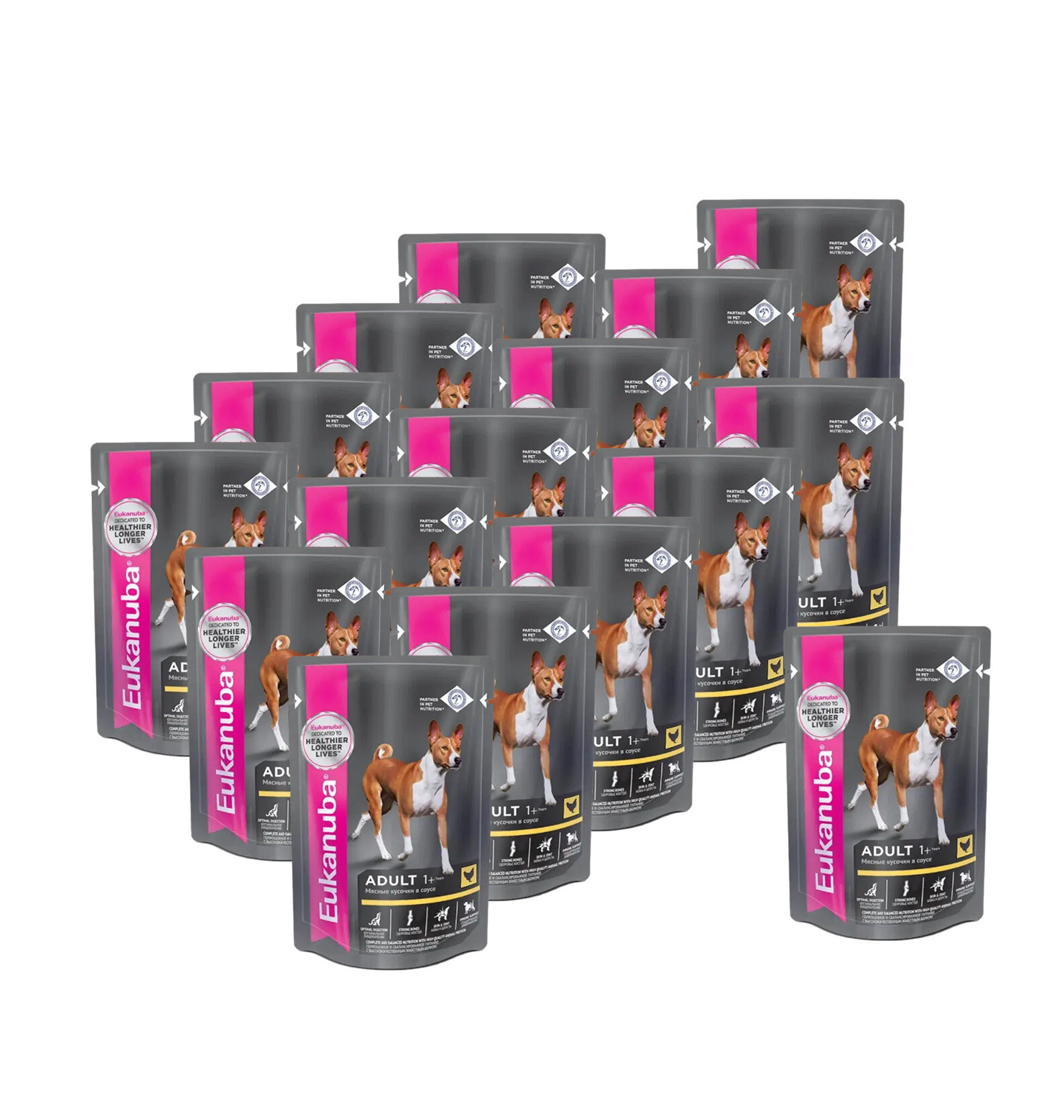 Купить Влажный корм Eukanuba Adult Dog для собак с курицей в соусе в паучах - 100 г х 16 шт.