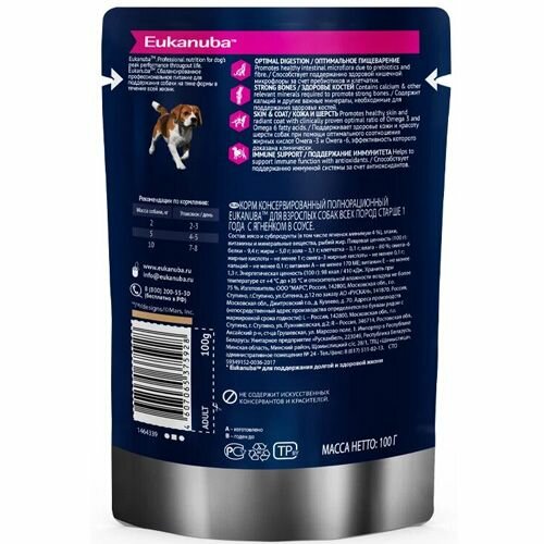 Eukanuba ADULT ALL BREED LAMB пауч влажный корм для взрослых собак всех пород, ягнёнок в соусе, 100 гр