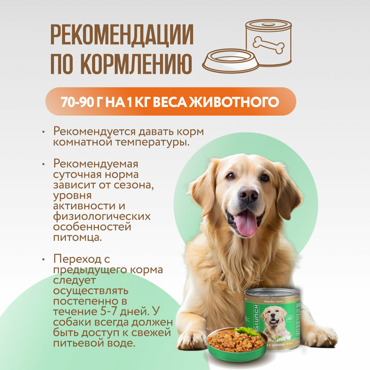 СохранитьКорм влажный DOG LUNCH индейка и цукини в соусе для собак (750г) интересное: