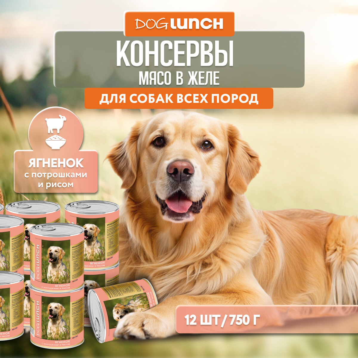 Консервы DOG LUNCH для собак ягненок с потрошками и рисом в желе 750 г (Упаковка 12 шт)