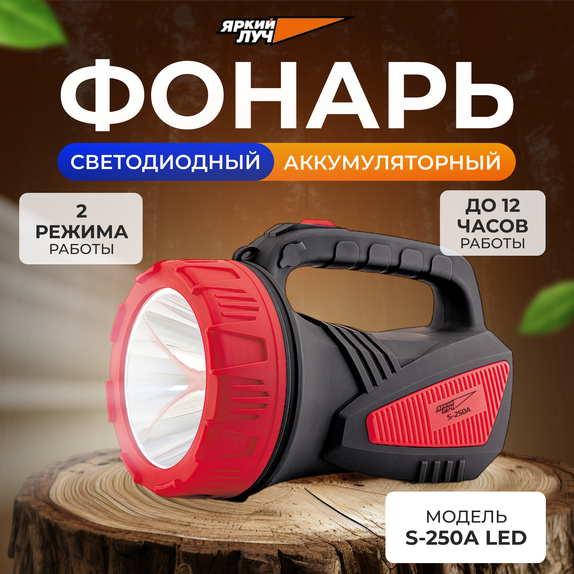 Аккумуляторный фонарь яркий ЛУЧ S-250A