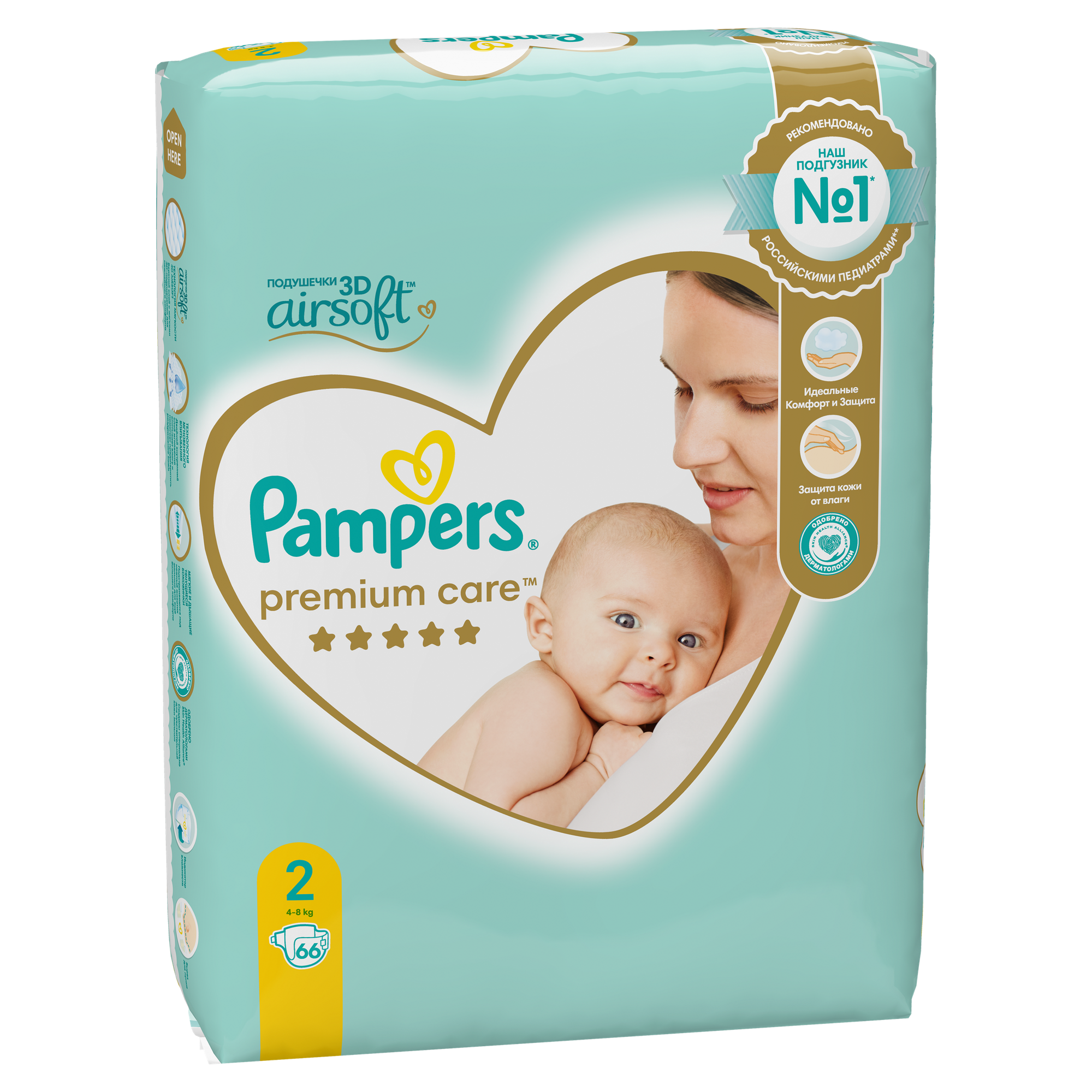 Подгузники Pampers Premium Care ➁ 4-8 кг 66 шт