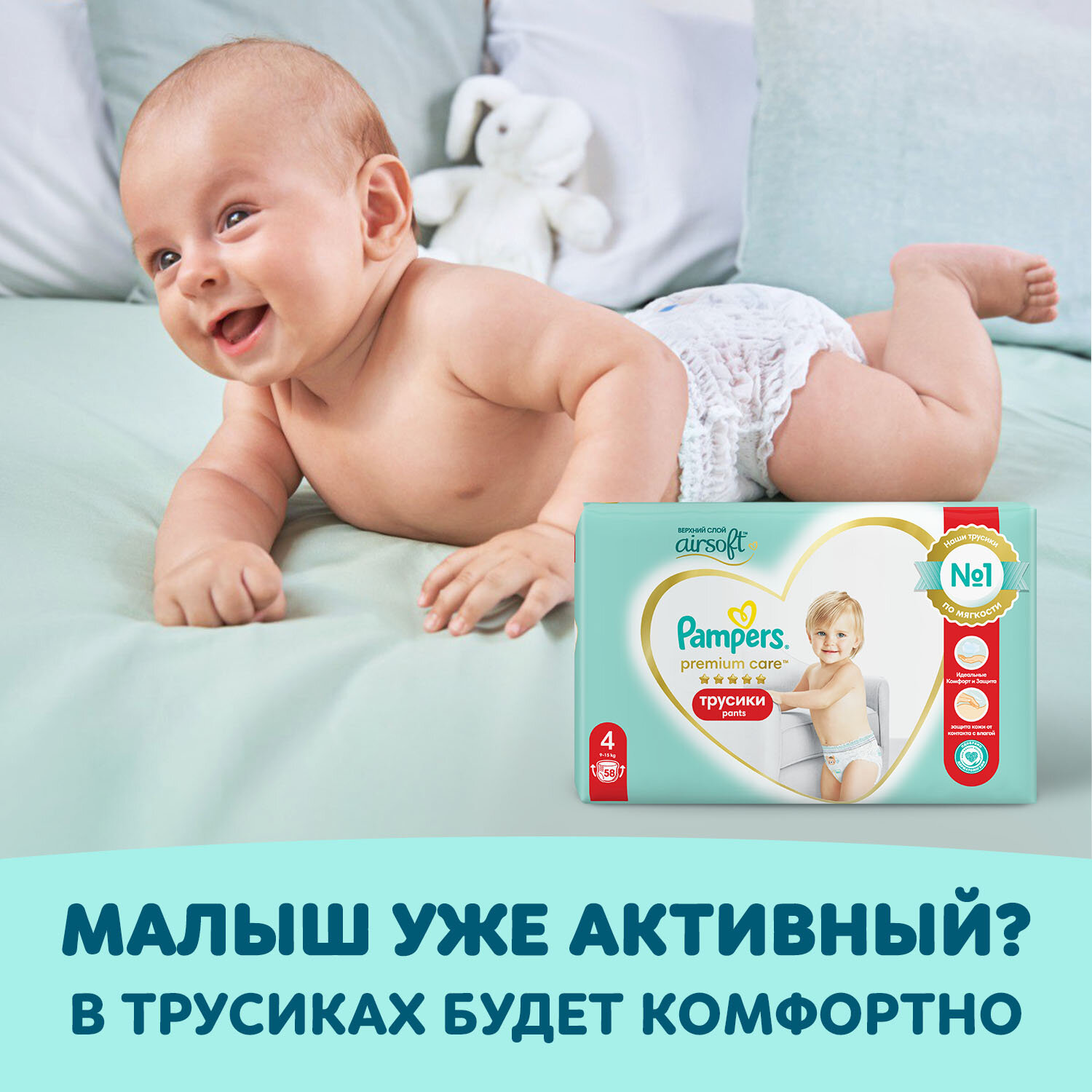 Подгузники 82 шт. PAMPERS (Памперс) Premium Care, размер 4 (9-14 кг), 1210801