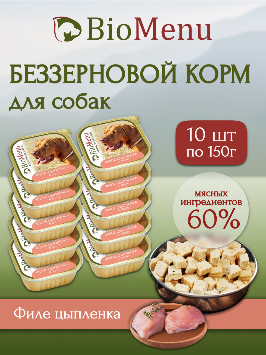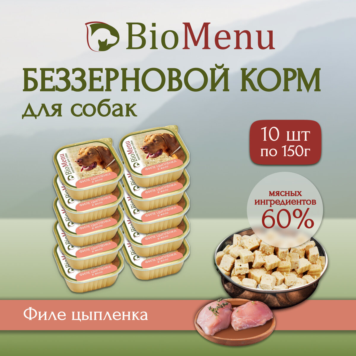 Купить Корм влажный BioMenu Monoprotein филе цыпленка в желе для собак (10шт x 150 г)