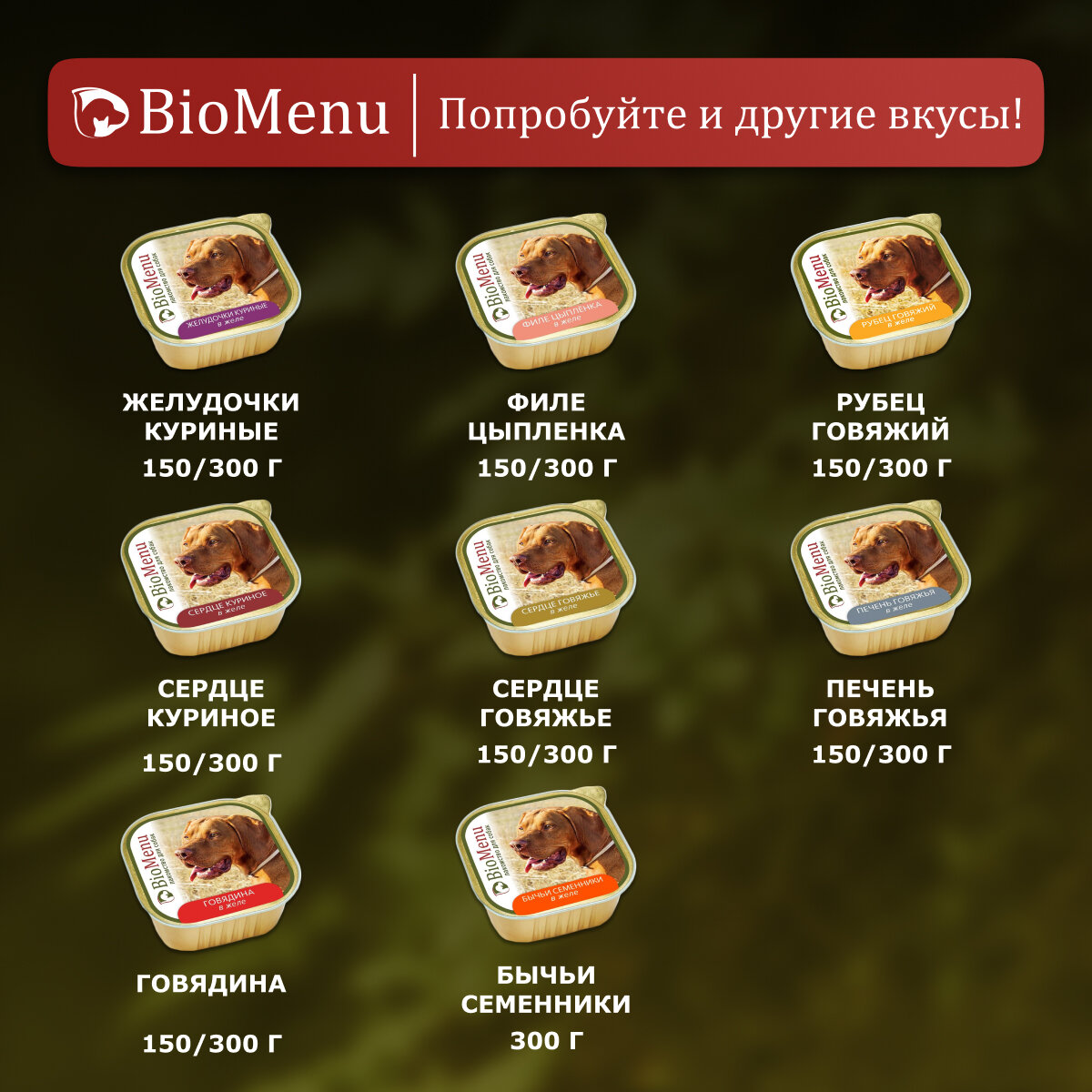 Корм влажный BioMenu Monoprotein желудочки куриные в желе для собак (300 г)