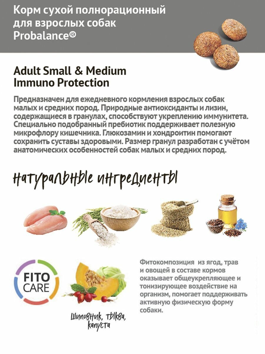 Probalance для собак малых и средних пород, Adult Small&Medium Immuno Protection, пакет 2 кг