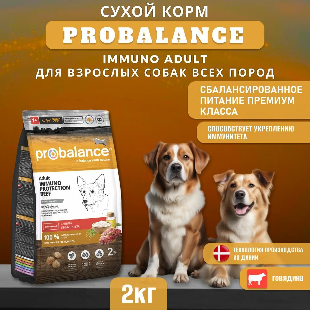 Купить Сухой корм ProBalance Immuno Adult для взрослых собак всех пород с говядиной, 2 кг