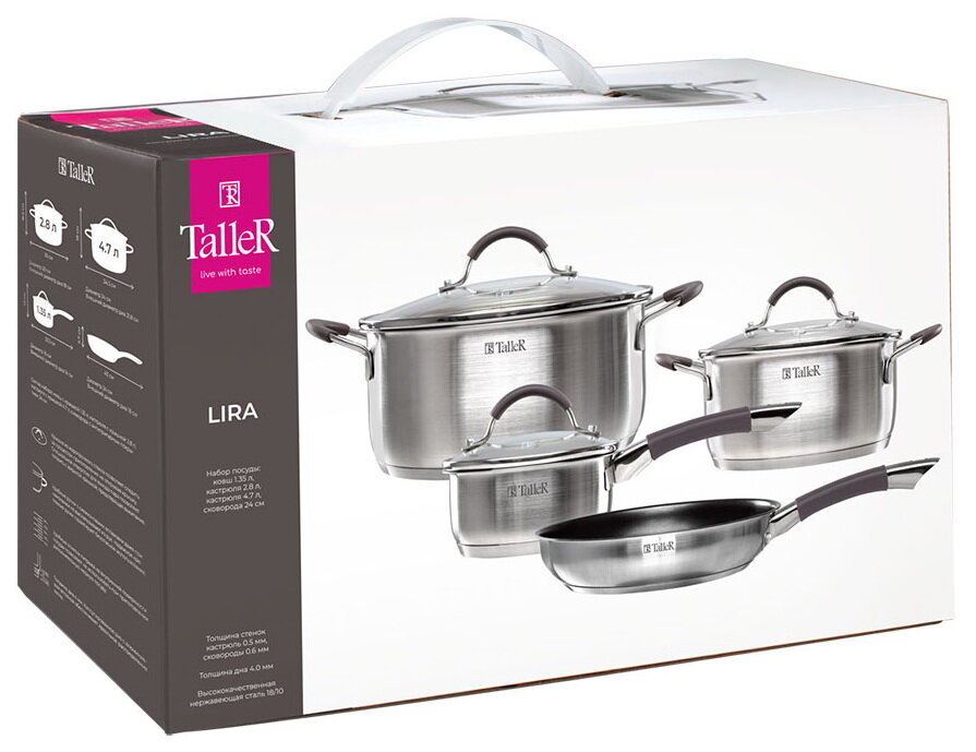 Набор посуды Taller LIRA TR-11025 (ковш 1,4л, кастрюли 2,8 и 4,7л, сковорода 24см)