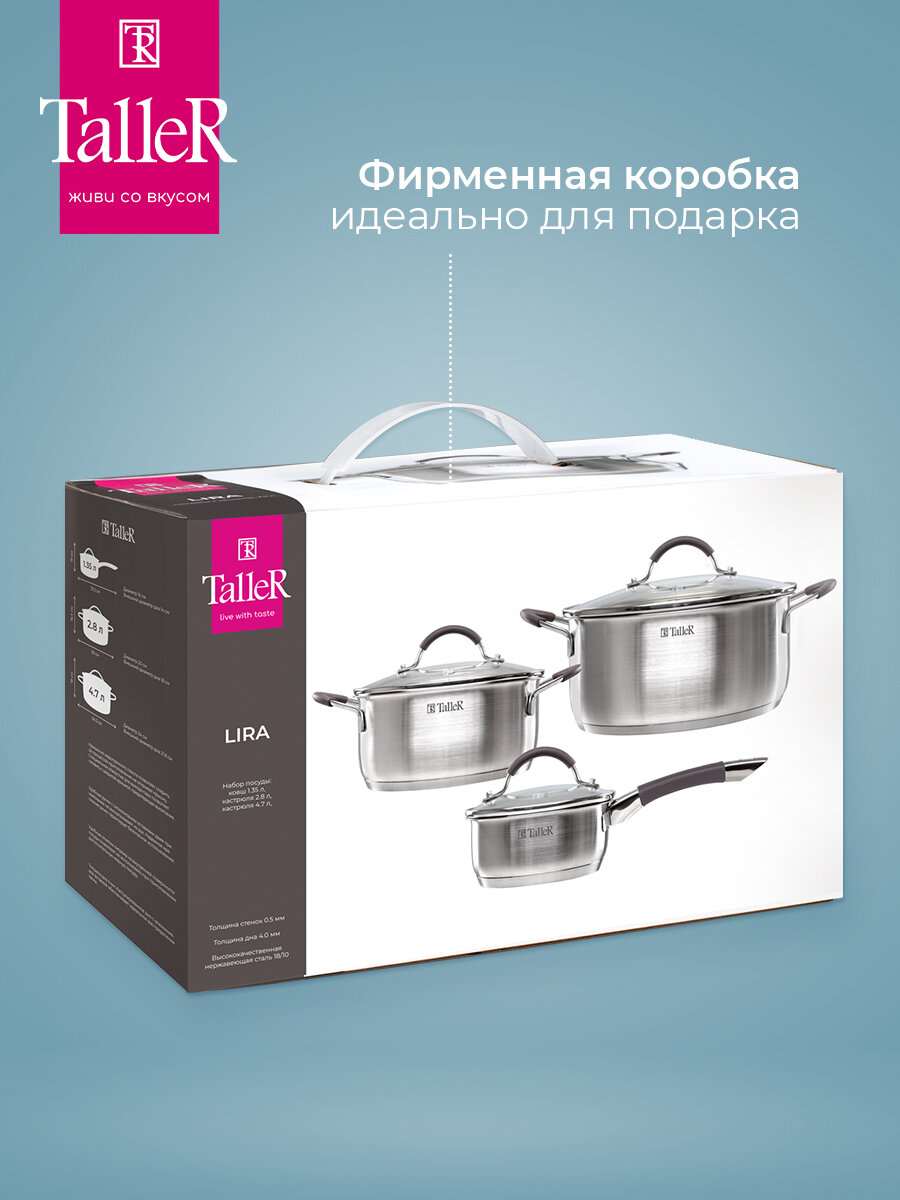Набор посуды Taller LIRA TR-11020 (ковш 1,4л, кастрюли 2,8 и 4,7л)