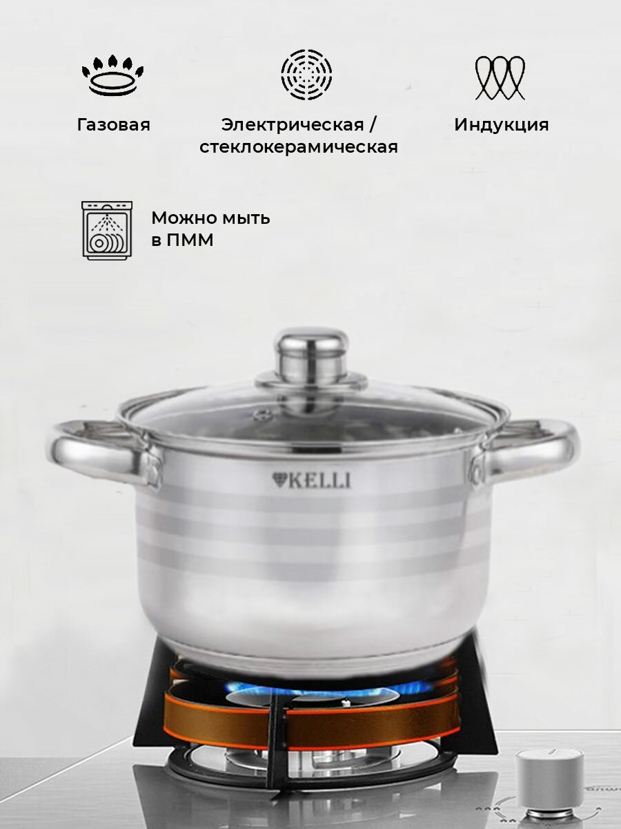 Набор кастрюль из нержавеющей стали с крышками Kelli 4294 для индукционных плит 6шт без антипригарного покрытия