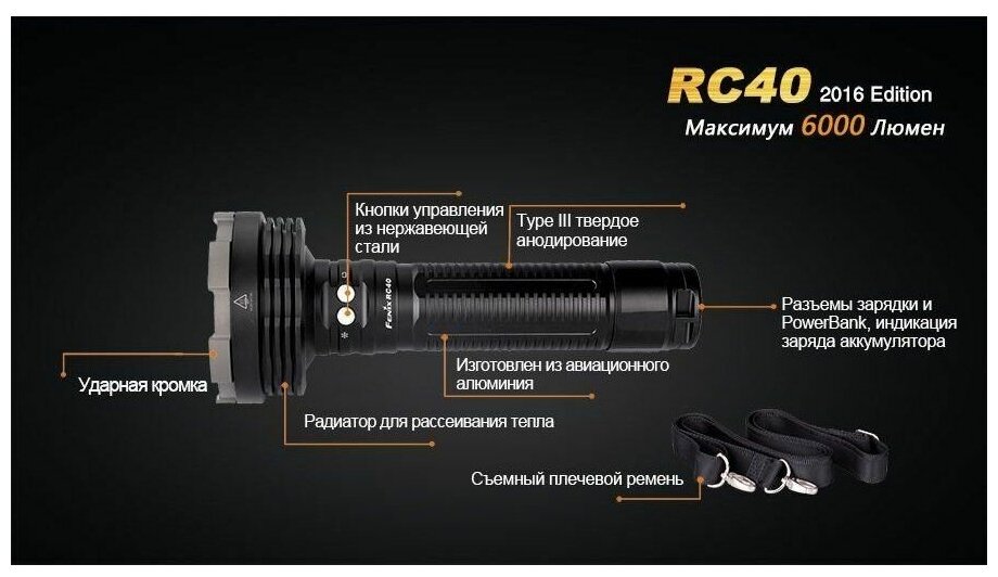 Фонарь ручной Fenix RC40 2016, черный интересное: