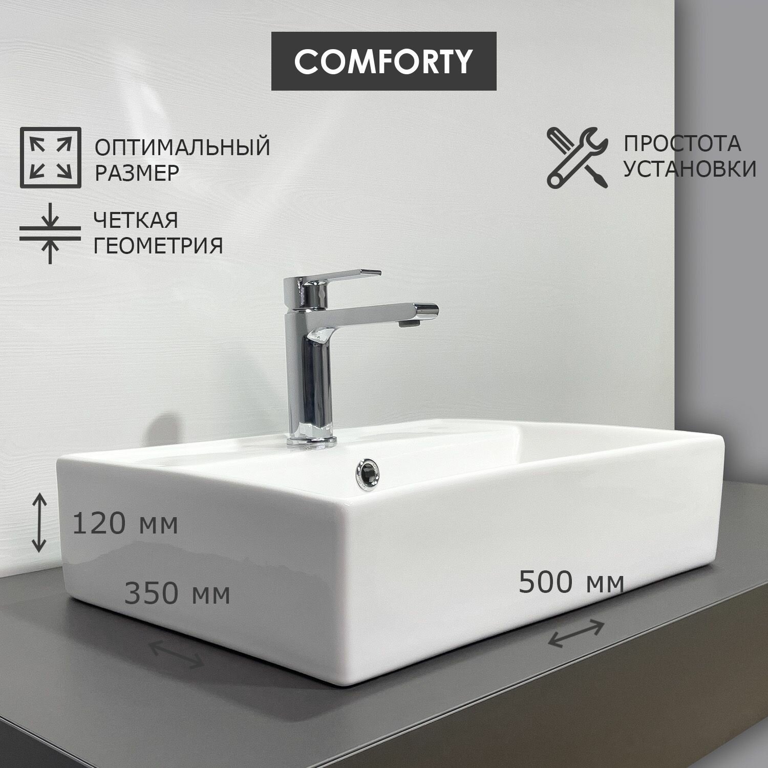 Купить Раковина накладная прямоугольная 50 см для ванной Comforty 7657D белая (на тумбу, столешницу, подвесная)
