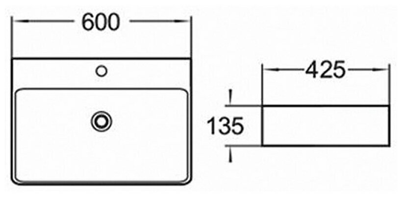 Накладная раковина COMFORTY 78574-60 на столешницу из фарфора с прямоугольной чашей