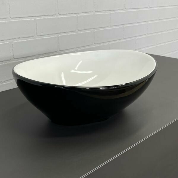 Раковина COMFORTY 7138BW 40см, черно-белая, овальная, накладная, фарфор, без смесителя и перелива