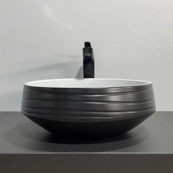 Черная круглая рифленая раковина 36 см Comforty 78728MB матовая, накладная, для ванной для установки на столешницу