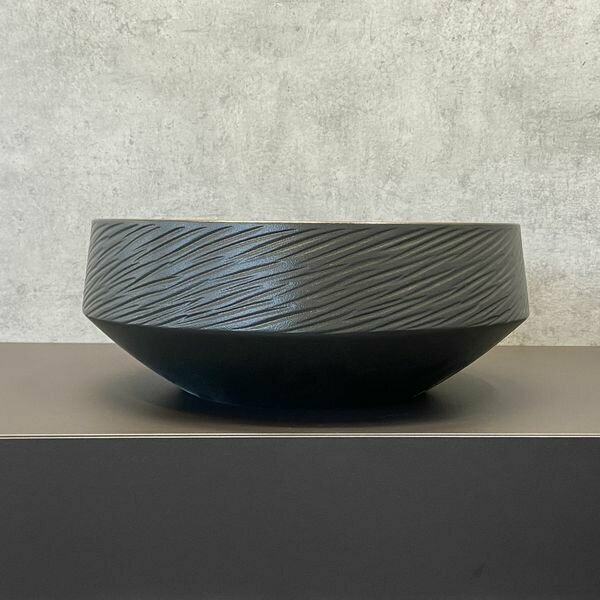 Черная круглая рифленая раковина 36 см Comforty 78728MB матовая, накладная, для ванной для установки на столешницу