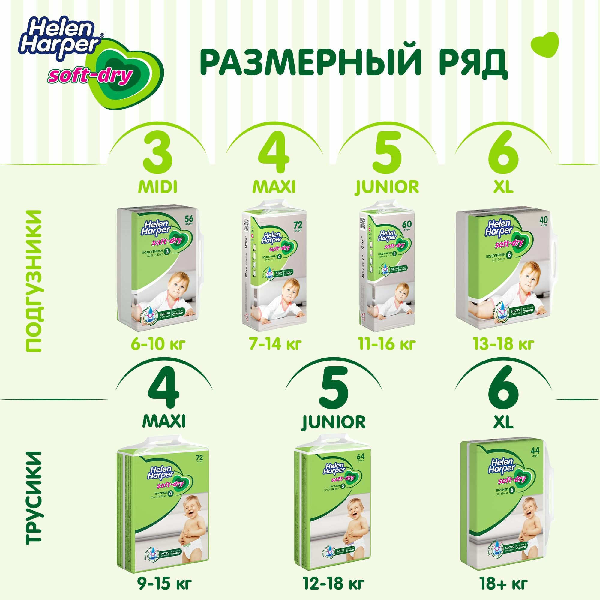 СохранитьПодгузники трусики 4/L, 72 шт / Helen Harper Soft&Dry/ размер 4 Maxi (9-15 кг) / детские/ с мягким пояском интересное: