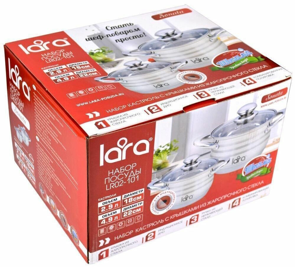 Набор посуды LARA LR02-101 Sonata, 2,9 л, 4,9 л, нержавеющая сталь, для всех видов плит, 2 предмета