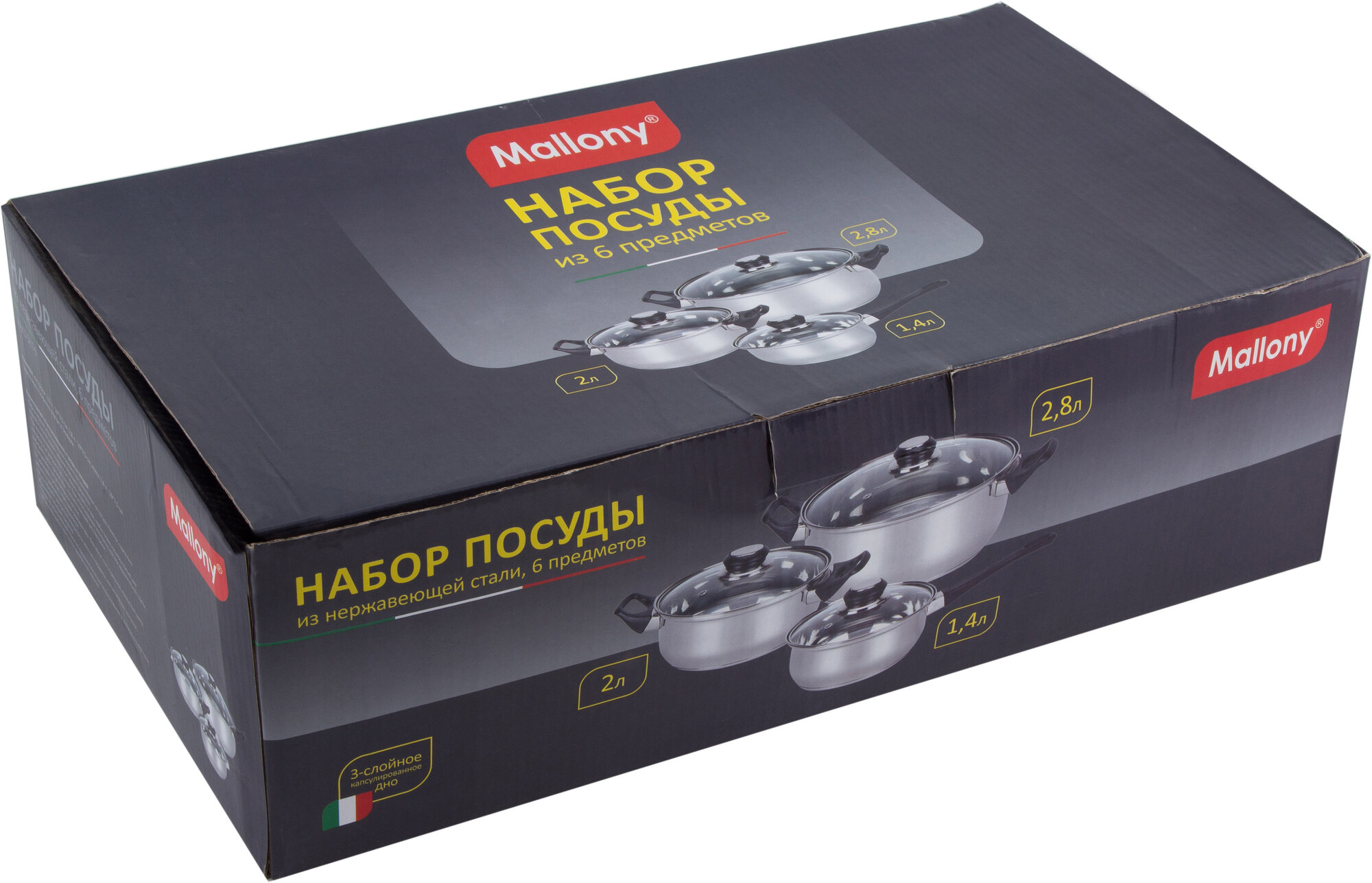 Купить Набор кастрюль из нержавеющей стали Mallony BAKS-SET 6 предметов (2 кастрюли, ковш, 3 крышки), 1.4, 2, 2.8 л