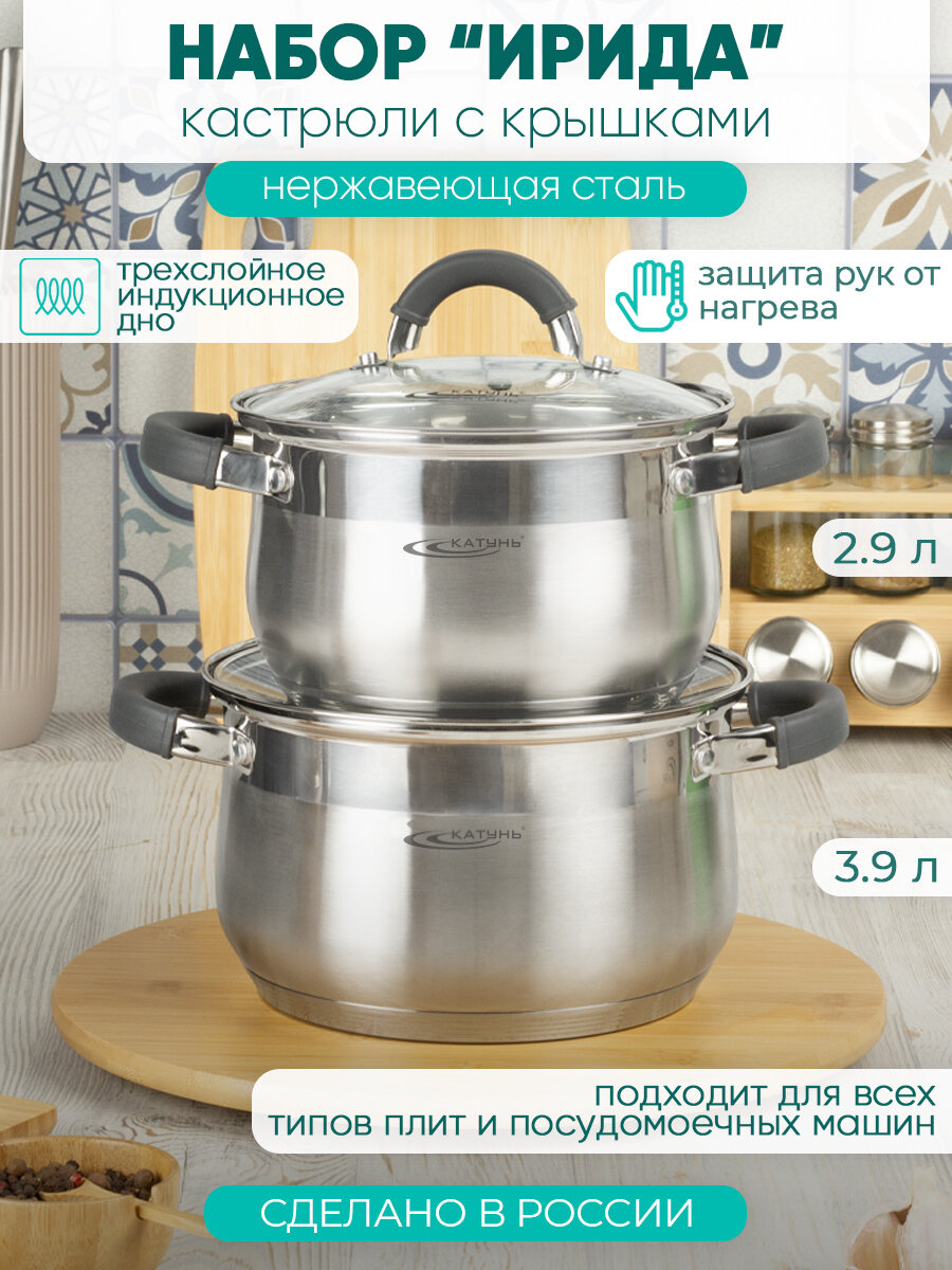 СохранитьНабор кастрюль из нержавеющей стали 4 предмета «Ирида (2,9л+3,9л) Катунь интересное: