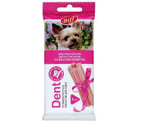 СохранитьЛакомство для собак мелких пород BIFF снек для чистки зубов dent креветки 5шт интересное: