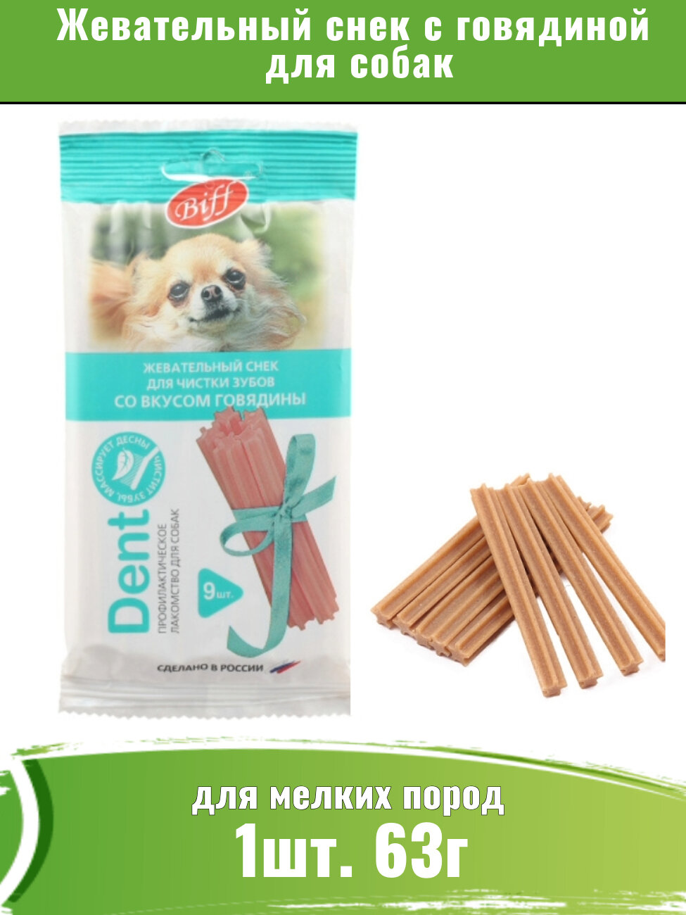 Бифф (Biff) 63г жев. снек Dent для чистки зубов со вкусом говядины для мелких собак