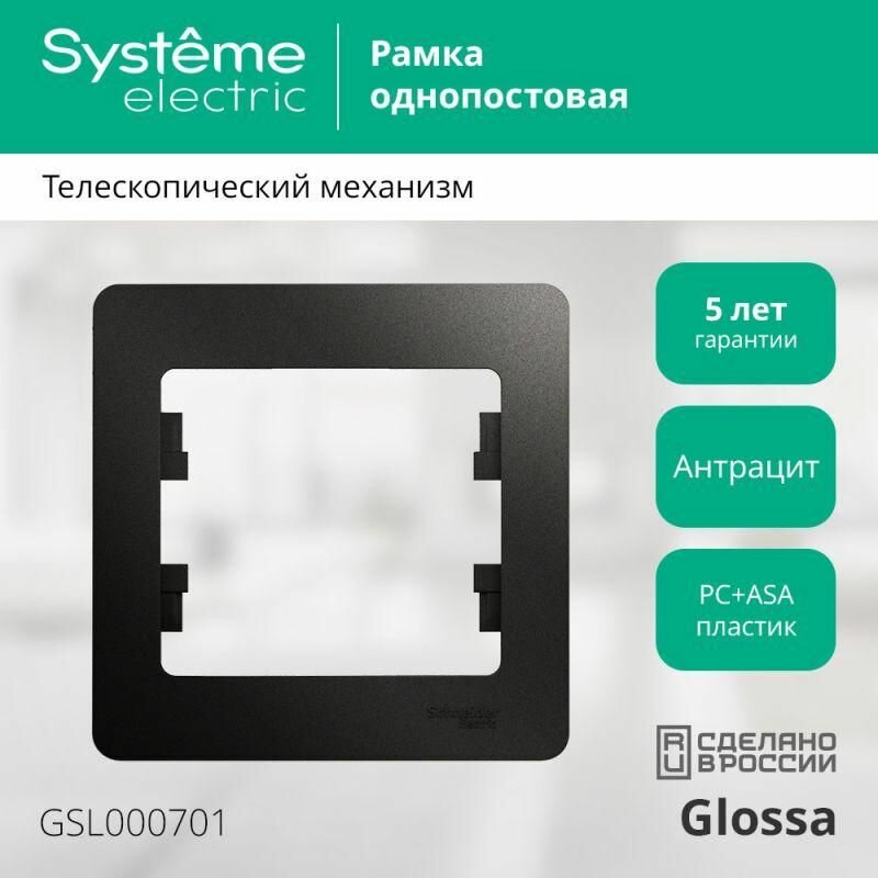 12шт. - GLOSSA Рамка 1 пост антрацит / Systeme Electric; арт. GSL000701; оригинал / - комплект 12шт