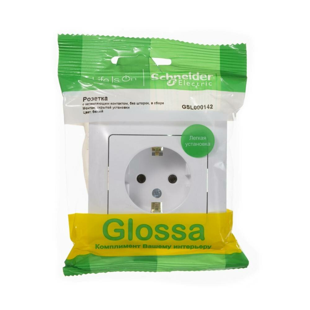 10шт. - GLOSSA Розетка с заземлением в сборе белая / Systeme Electric; арт. GSL000142; оригинал / - комплект 10шт