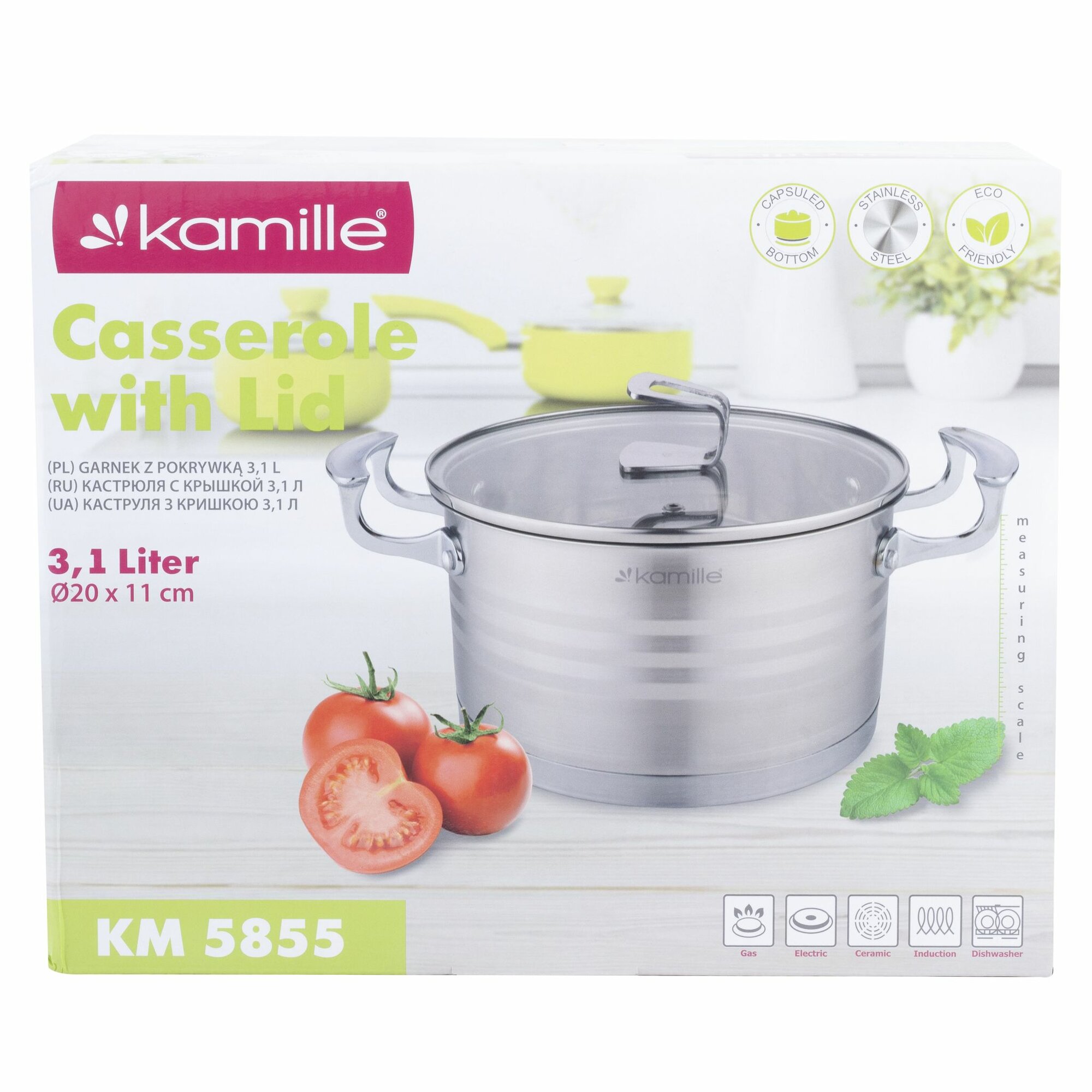 Купить Кастрюля 20*11см, 3,1L из нержавеющей стали с крышкой Kamille 5855