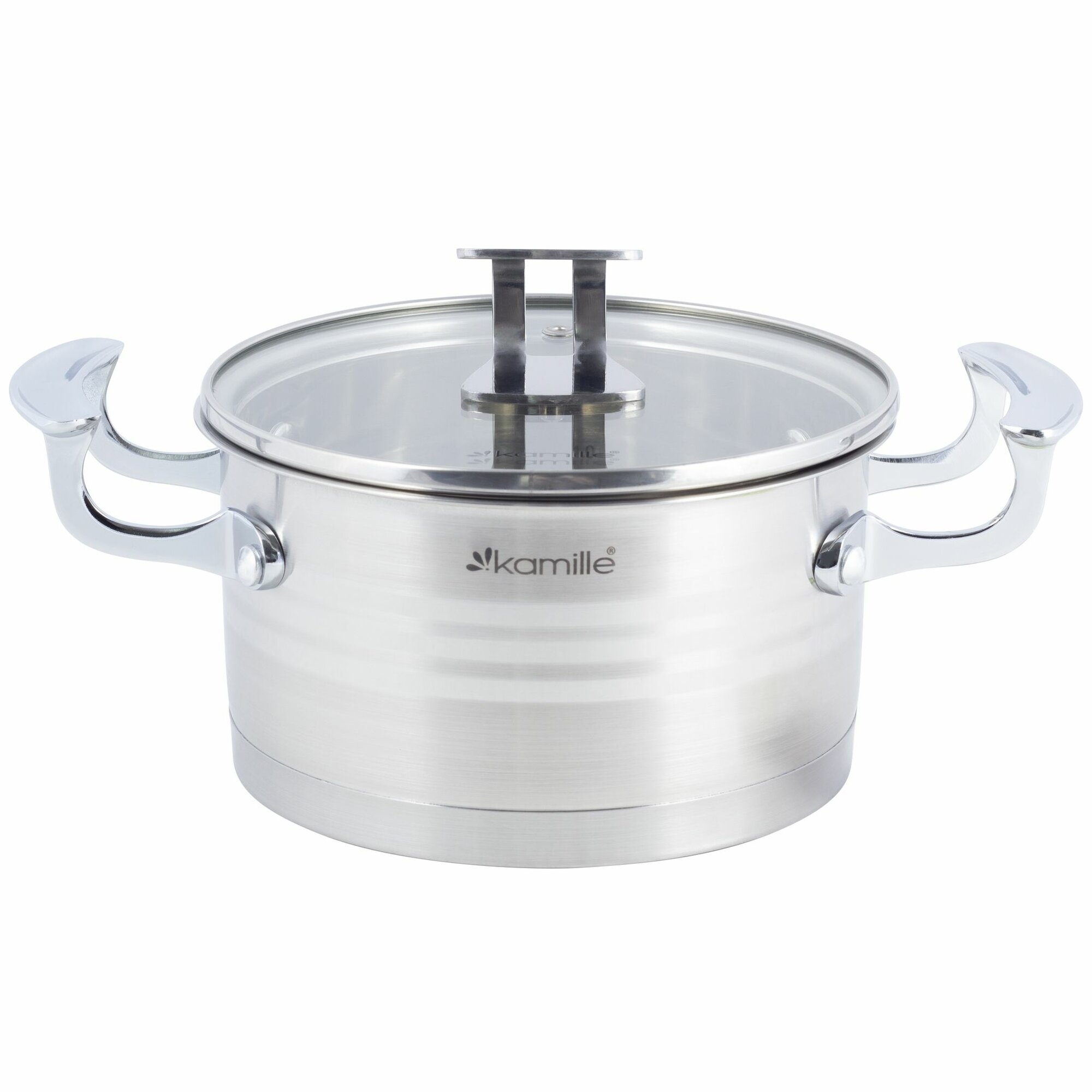 Кастрюля 4,4 л. из нержавеющей стали Kamille KM 5856 с крышкой (4,4 л. / серебристый)