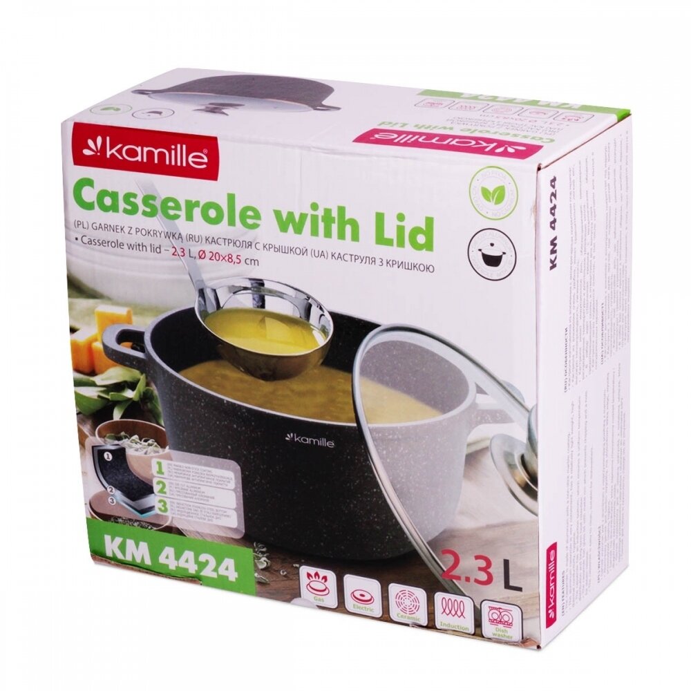 Кастрюля из литого алюминия 4,5 л со стеклянной крышкой KAMILLE