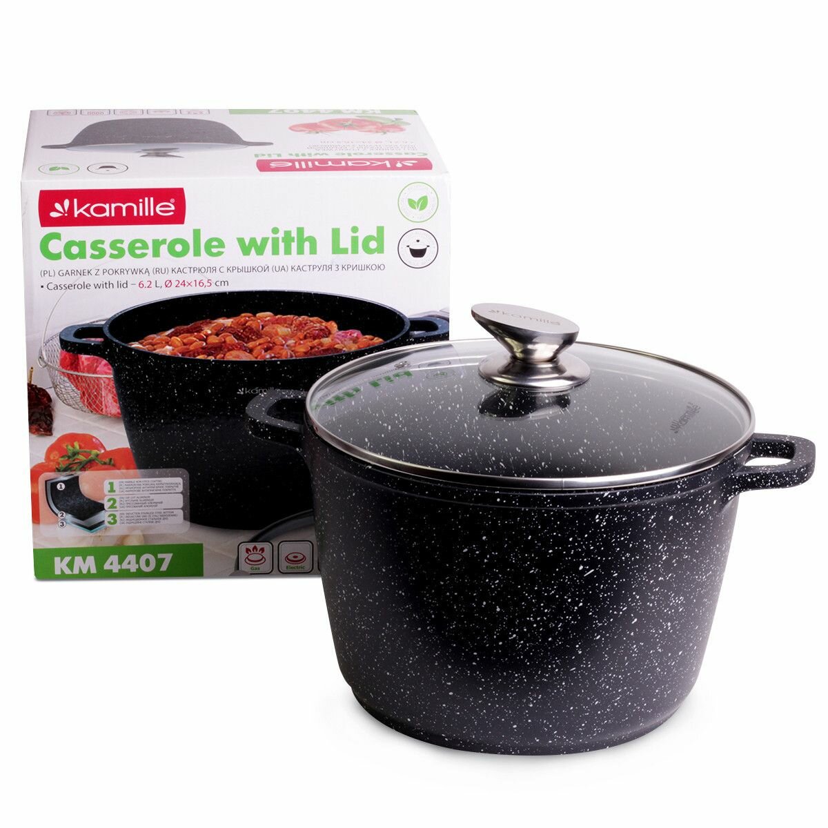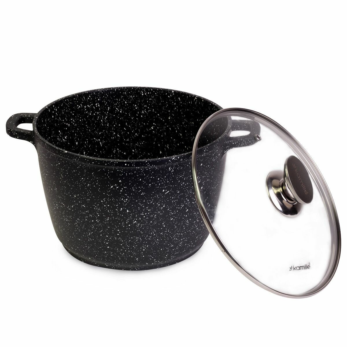 Купить Кастрюля 6,2 л. из литого алюминия Kamille KM 4407 с мраморным покрытием (6,2 л. / черный)