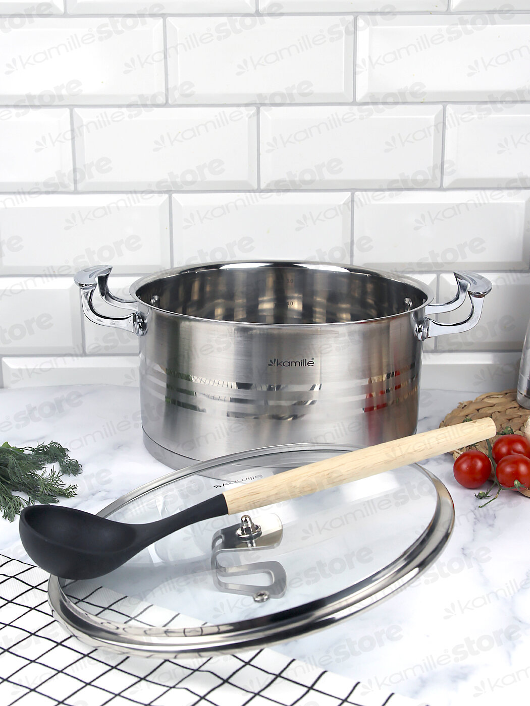 Купить Кастрюля 5,7 л. из нержавеющей стали Kamille KM 5857 с крышкой (5,7 л. / серебристый)
