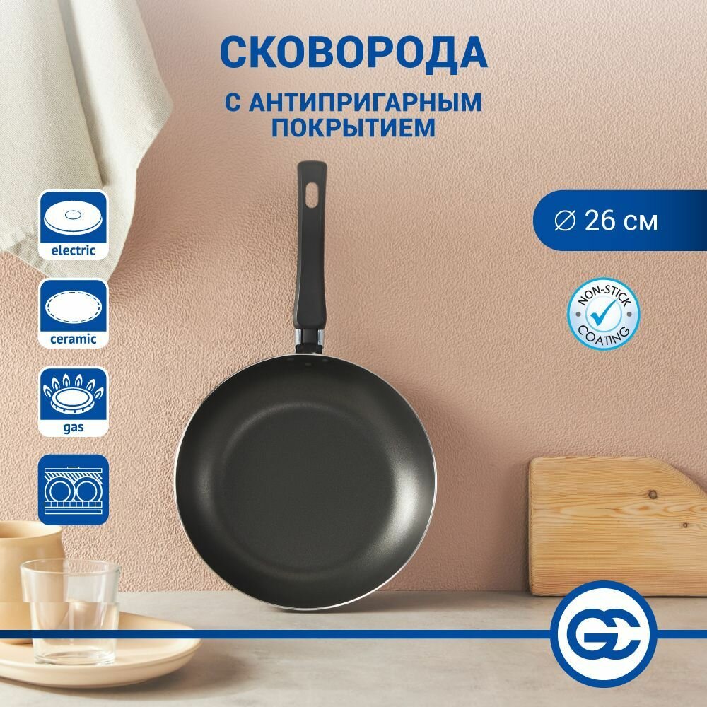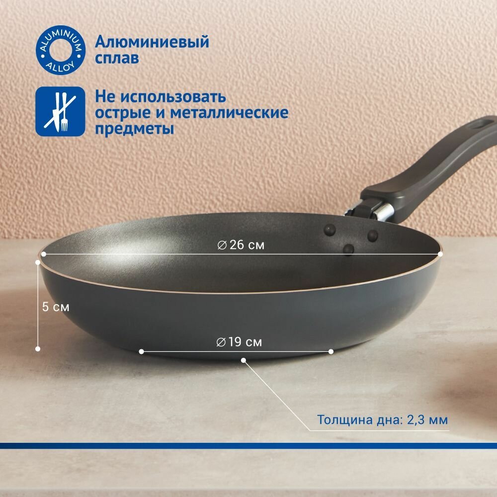 Сковорода с антипригарным покрытием Клио, 26 см, алюминий, без крышки, не индукция интересное: