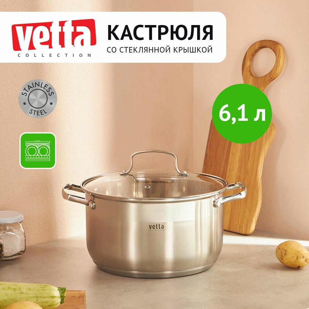 Купить Кастрюля 6,1 л со стеклянной крышкой Vetta "Берн", индукция