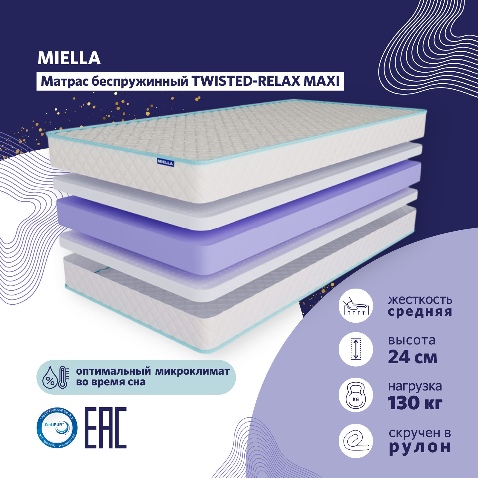 Матрас MIELLA Twisted-Relax Maxi 80x160 Вес 6,6 кг.