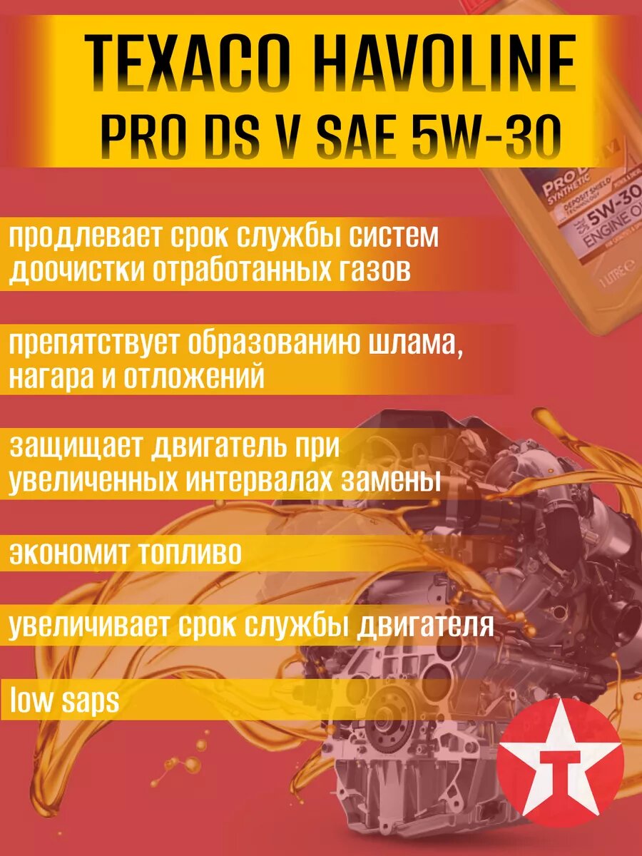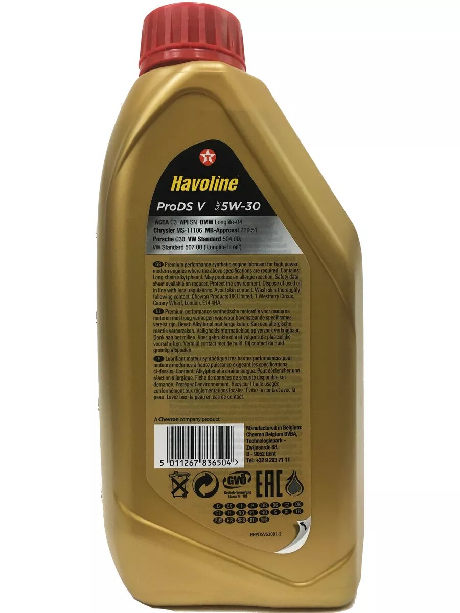 Масло моторное синтетическое TEXACO Havoline ProDS V SAE 5W-30, канистра 1л