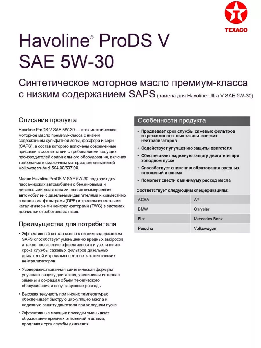 Ниже Вы можете прочитать отзывы на TEXACO 804038NKE Havoline ProDS V 5W30, ознакомится с подробными характеристиками, посмотреть интересные обзоры и фотографии на TEXACO 804038NKE Havoline ProDS V 5W30.