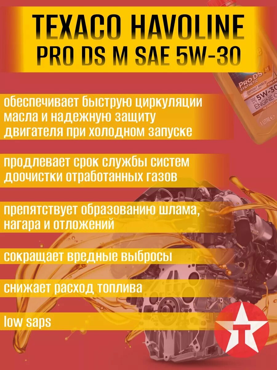 Синтетическое моторное масло TEXACO Havoline ProDS M 5W-30, 4 л