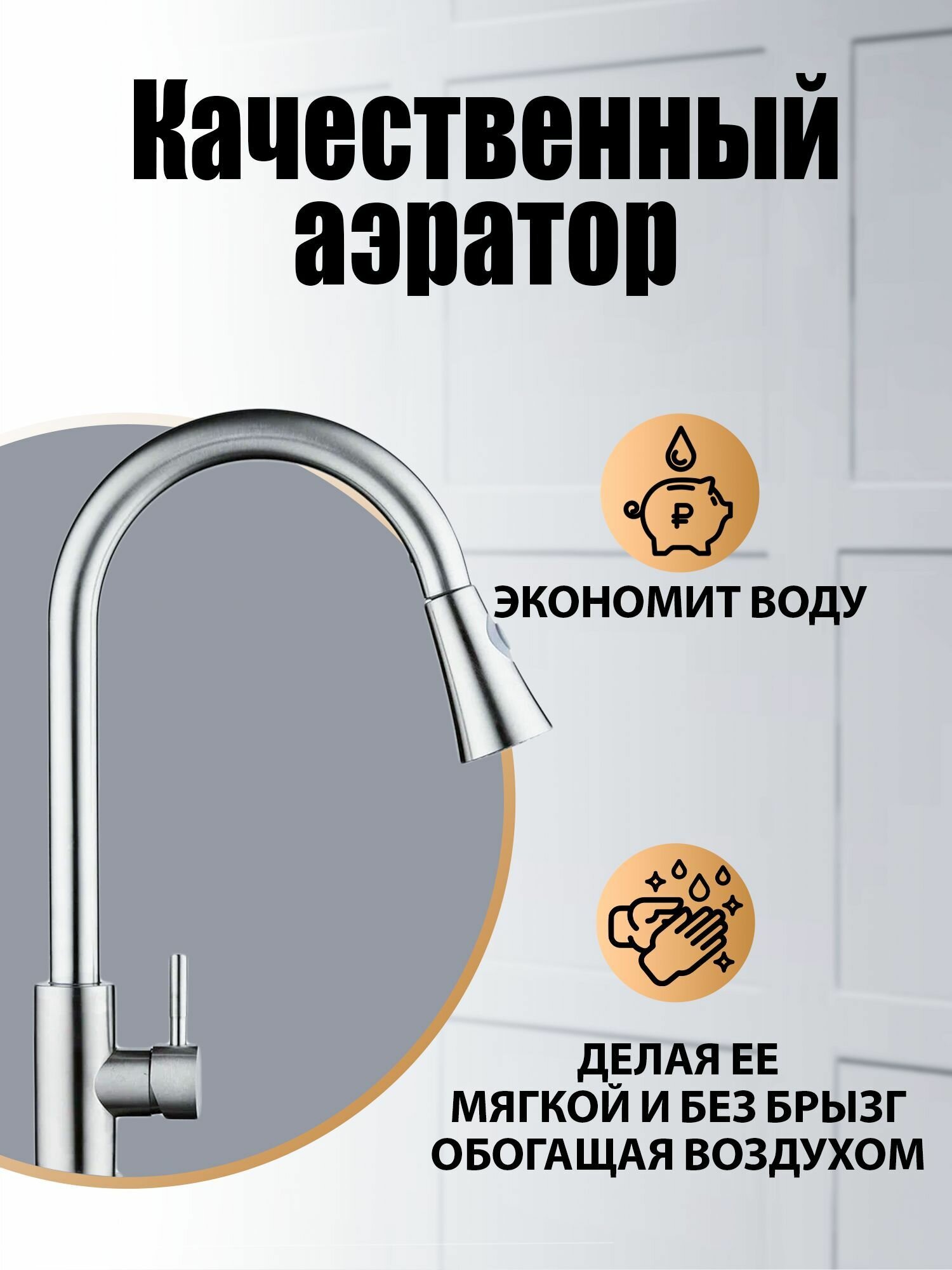 СохранитьСмеситель для кухни с гибким изливом (с вытяжной лейкой) Orange Steel M99-120st интересное: