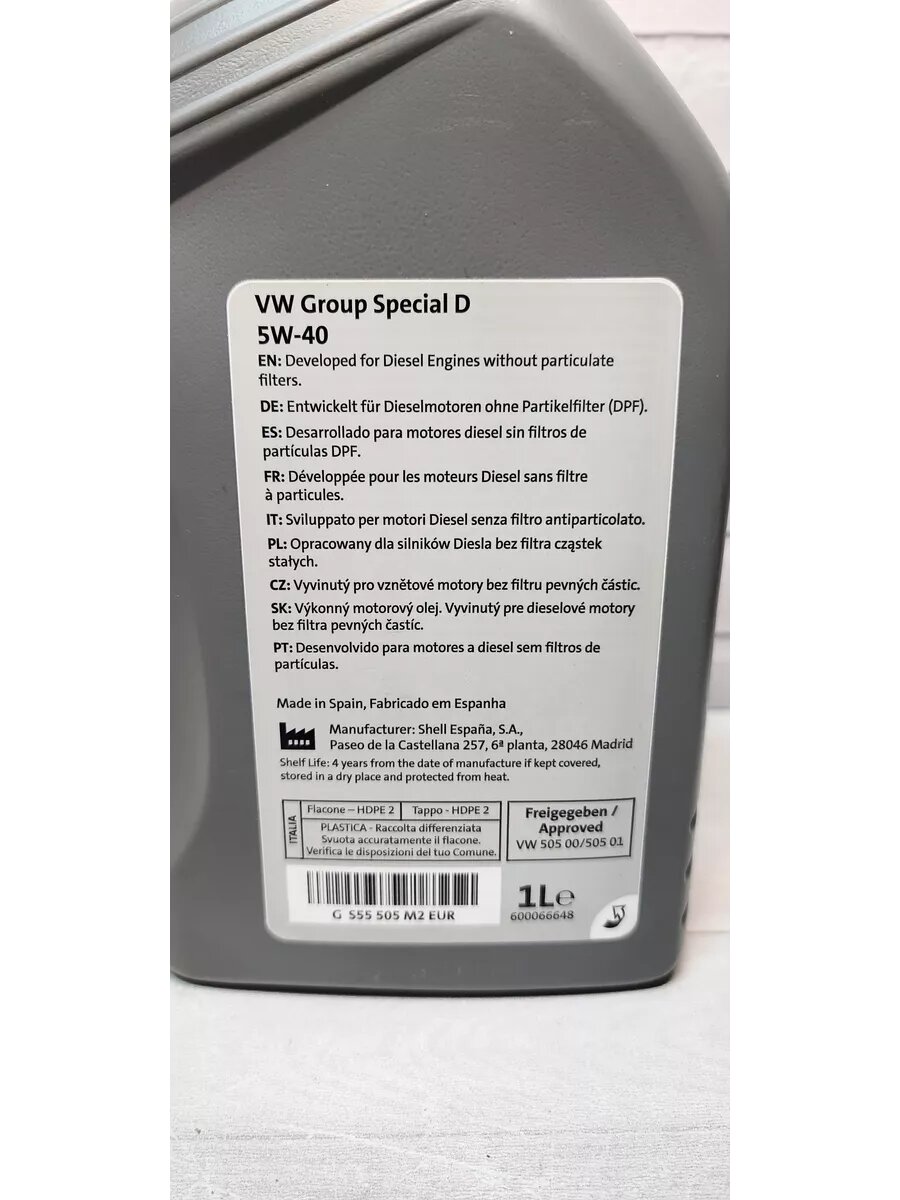 Моторное масло VW GROUP Special D 5W-40 синтетическое 5 л «Сделано в Испании»