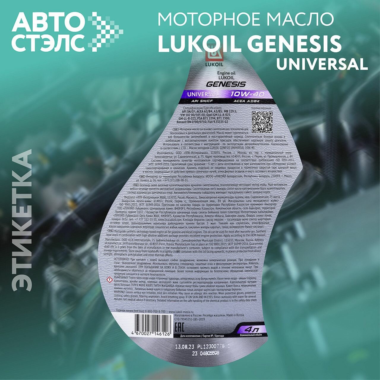 LUKOIL 3148646 10W-40 GENESIS UNIVERSAL 4л (полусинт. мотор. масло)
