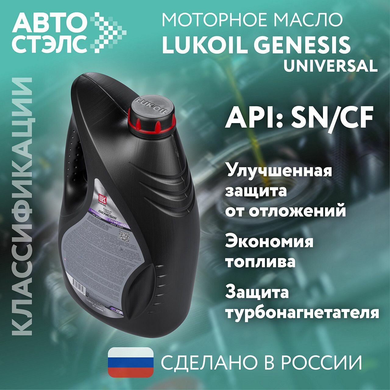Масло моторное Лукойл Genesis Universal 10w40 синтетическое, API SN/CF, ACEA A3/B3/B4, универсальное, 4л, арт. 3148646