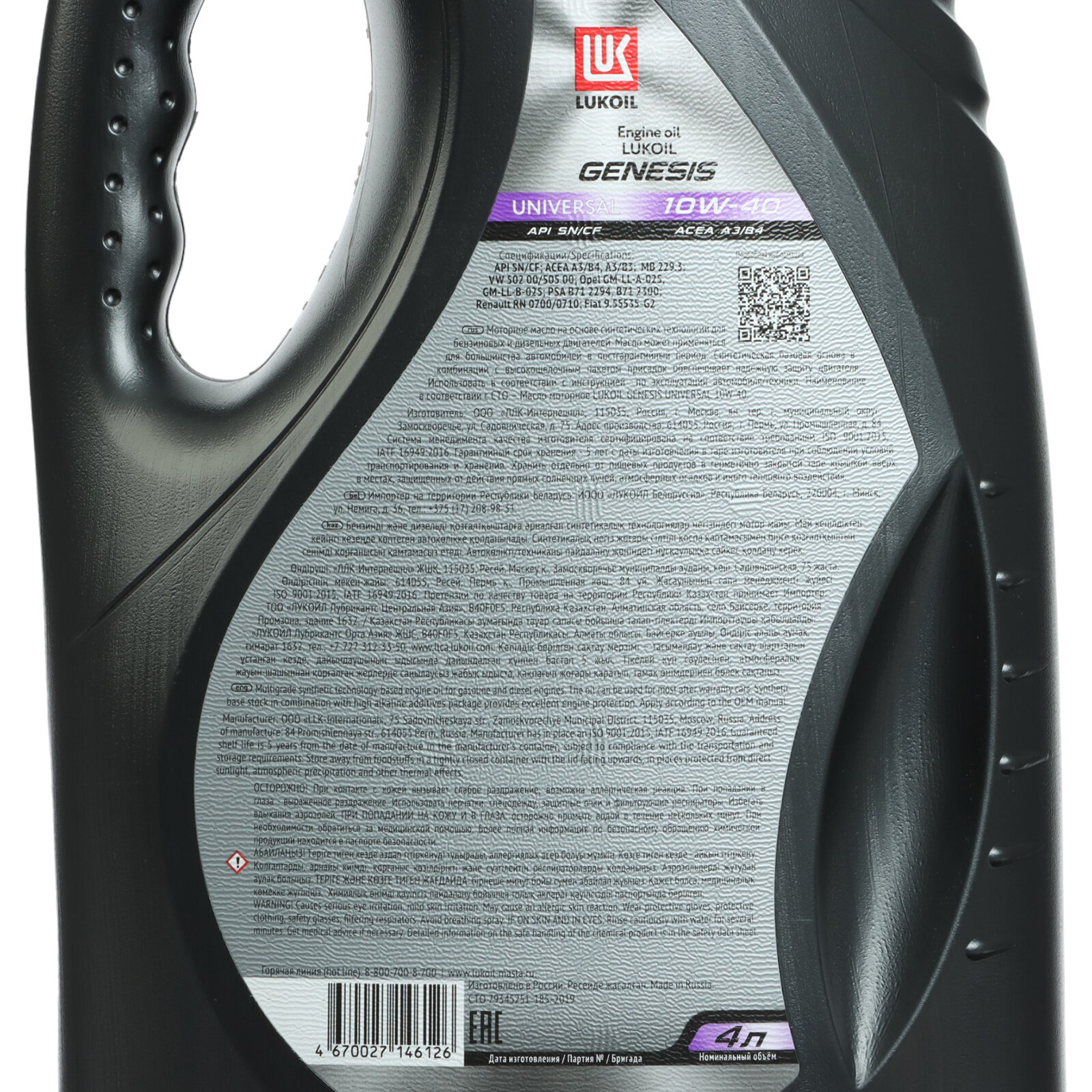 LUKOIL Лукойл Genesis Universal 10w-40 П/С (4л) Api Sn Acea A3/B4 Api Cf Mb 229.3 Psa B71 2300/2294 Vw 502