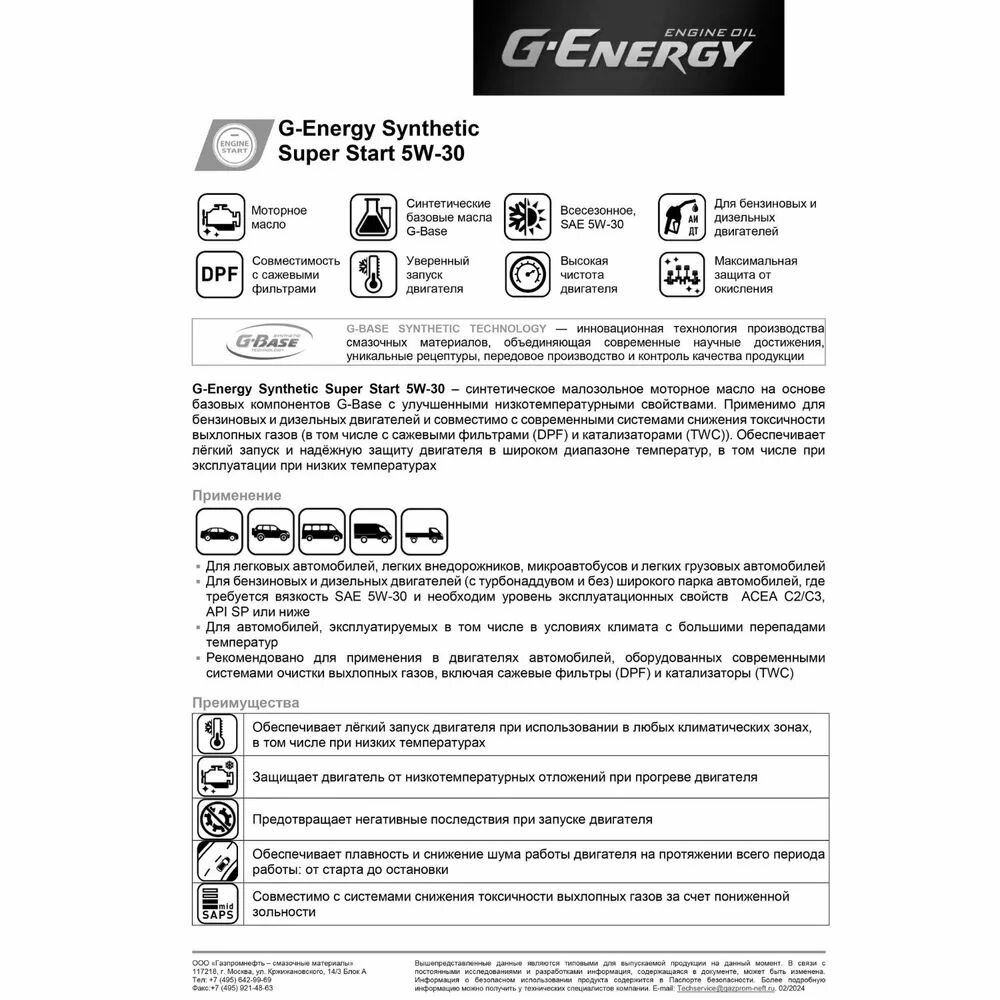 G-ENERGY 253142401 G-Energy Synthetic Super Start SAE 5W-30 5л