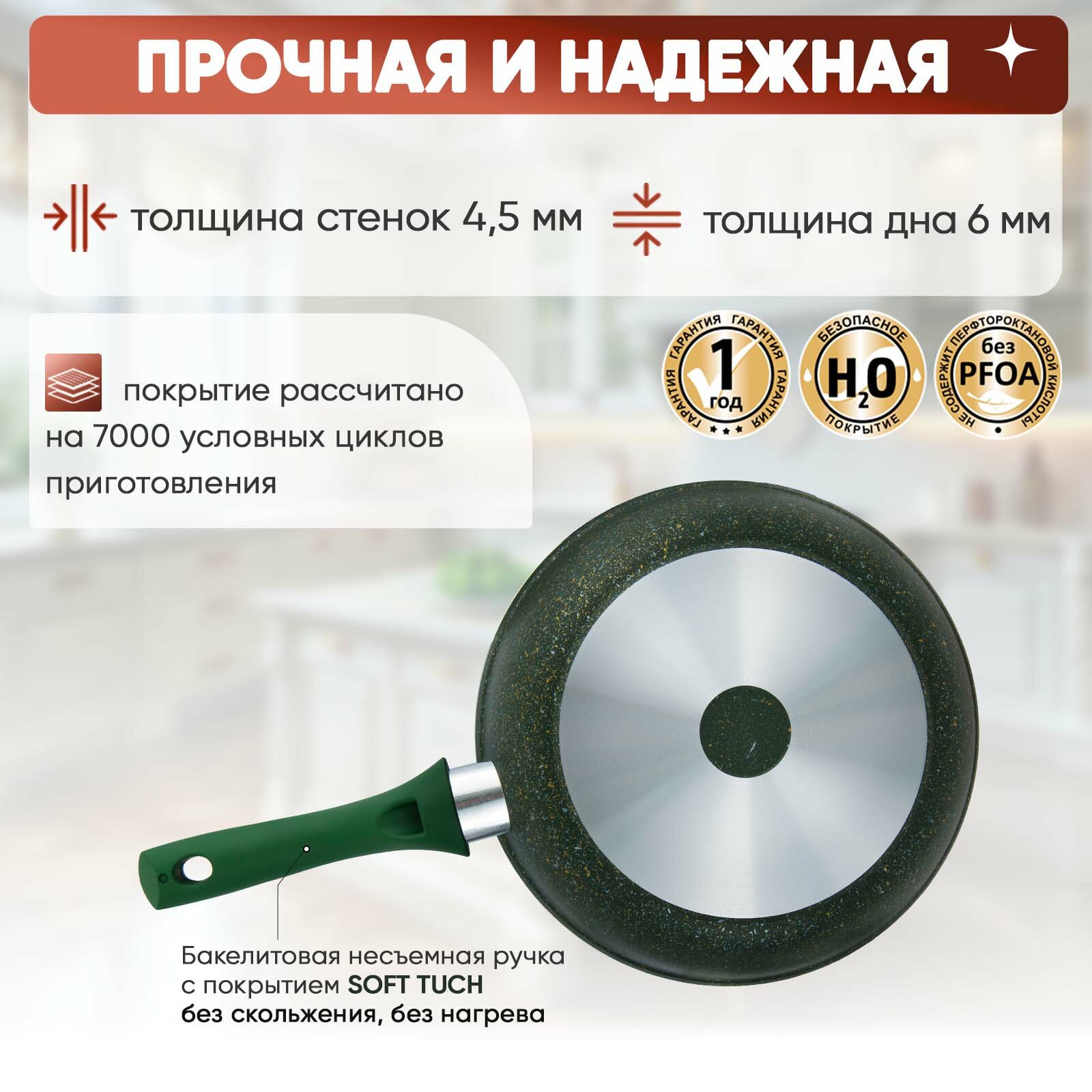 Сковорода Kukmara 26 см, с ручкой, Trendy style malachite (260tsml)