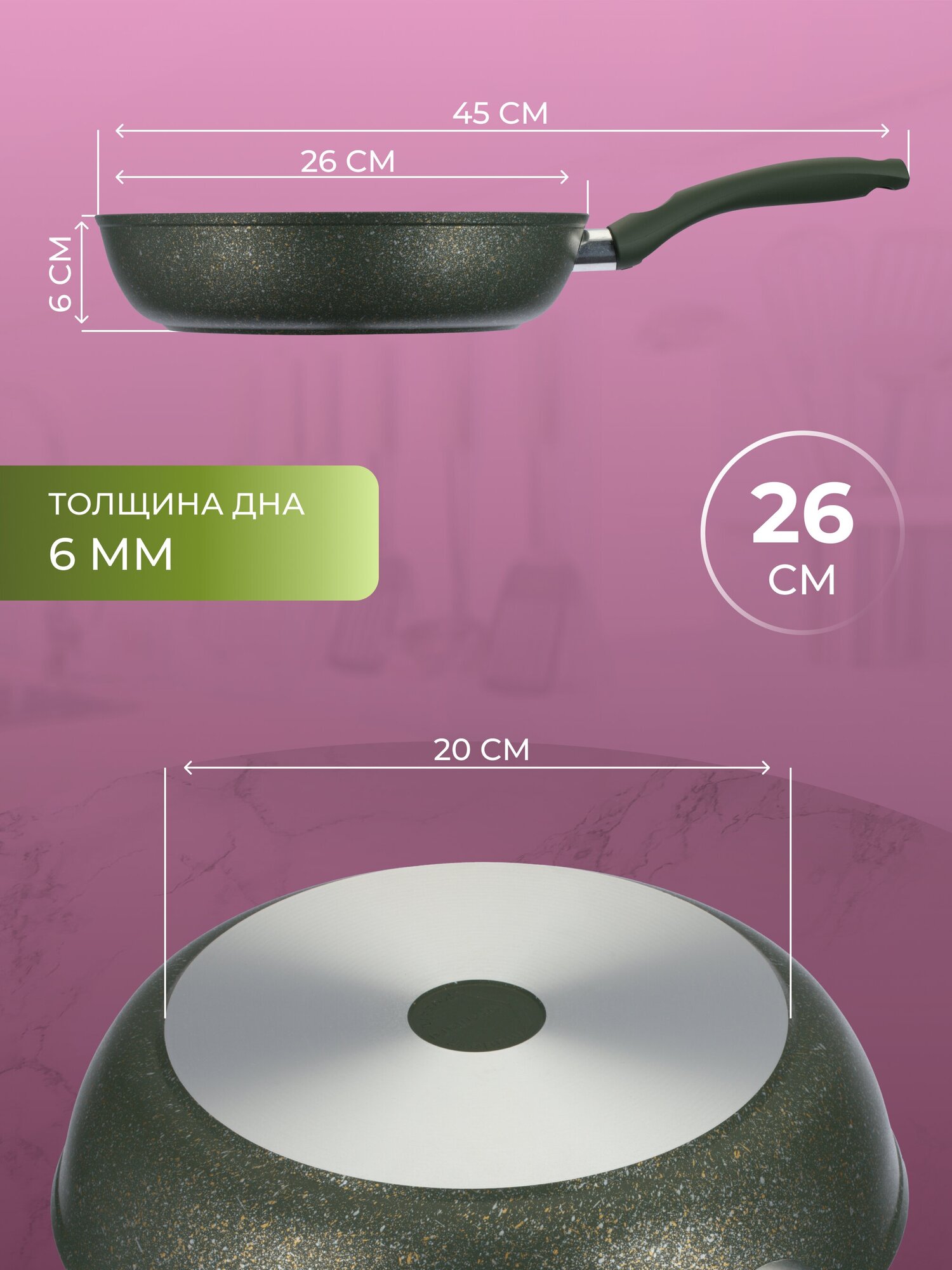 Сковорода KUKMARA Trendy style, d=26 см, пластиковая ручка, антипригарное покрытие, зелёный