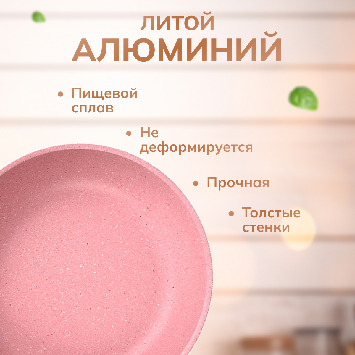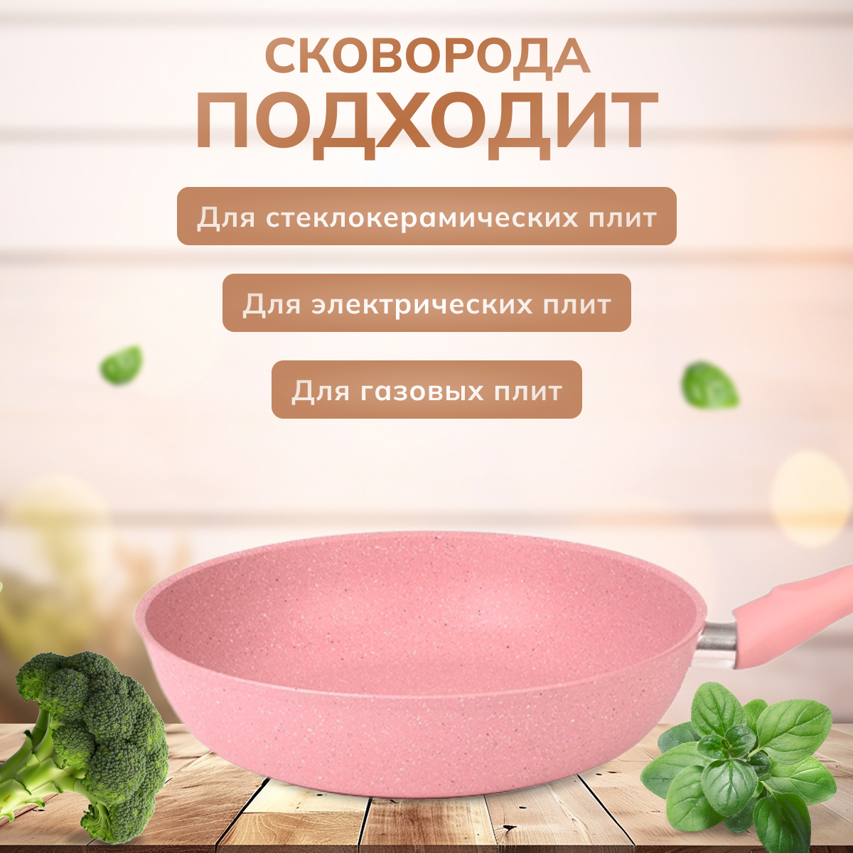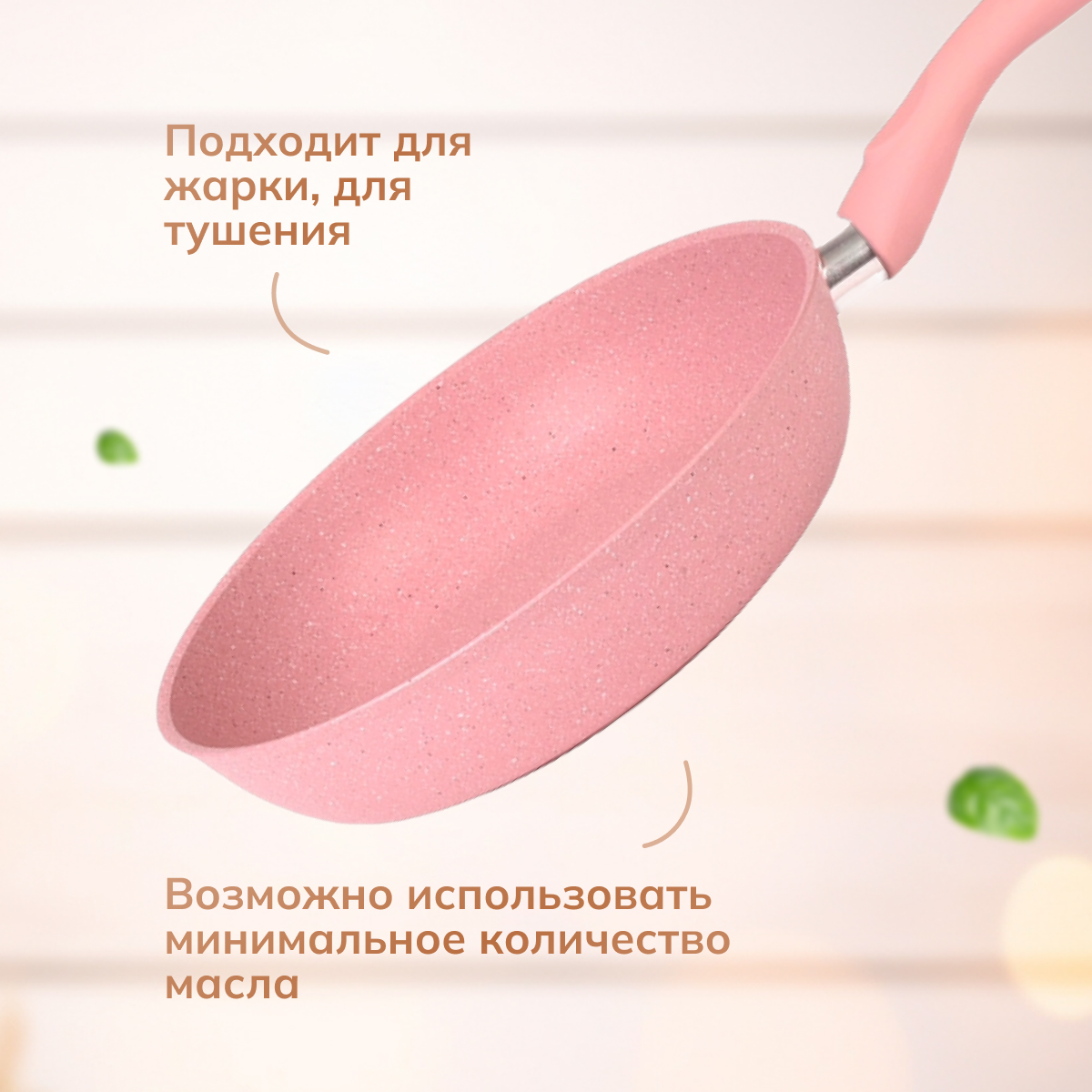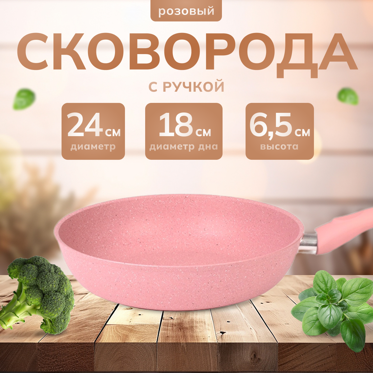 Сковорода с антипригарным покрытием, диаметр 26 см, материал литой алюминий, цвет розовый