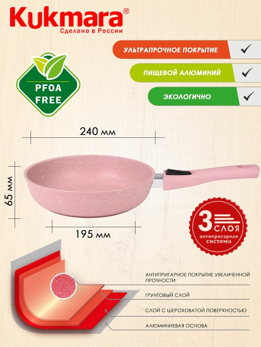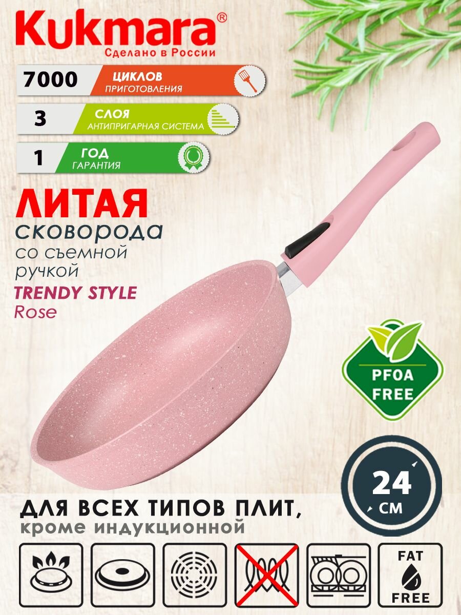 СохранитьСковорода с антипригарным покрытием со съемной ручкой Kukmara (Trendy style rose) 241tsr, 24 см, интересное: